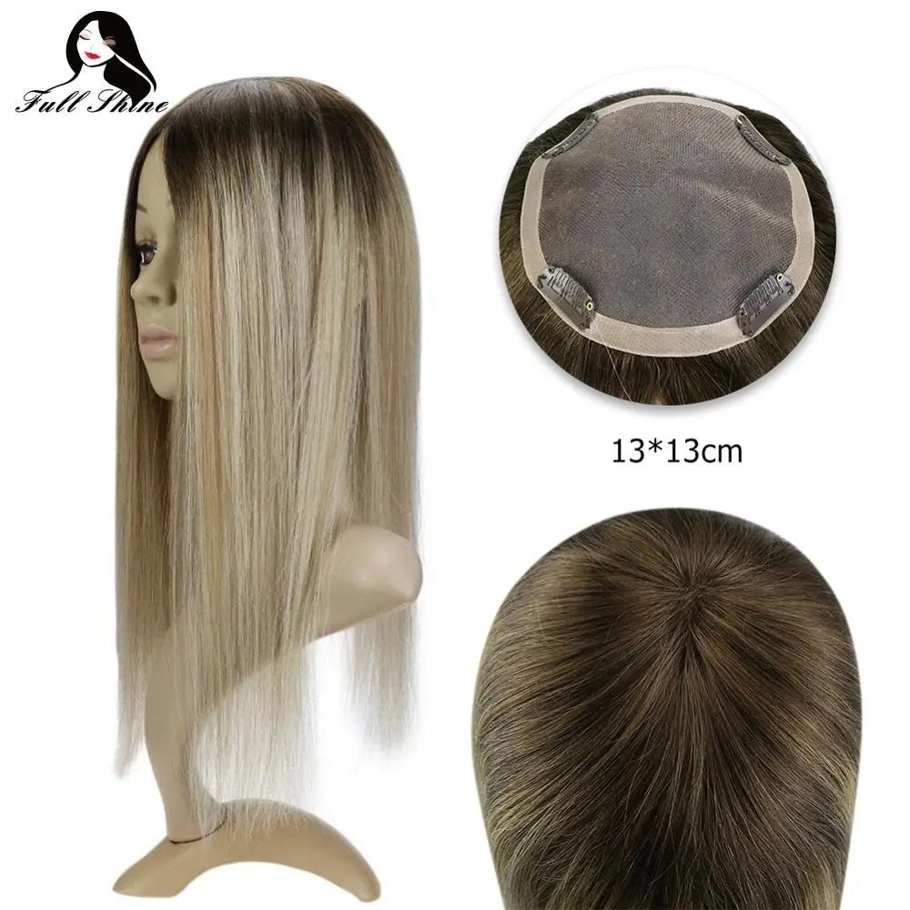 Name: Pieza de cabello Remy para mujer, adorno de pelo con brillo completo, ombré, 13x13cm, con Clips, 100%, corona de cabello humano Real, Mono Base para mujer